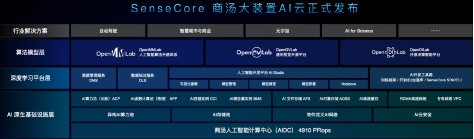 SenseCore商汤大设备AI云是根据商汤AI大设备的一套开箱即用的工业级AI东西链,无需前期投入,即可完成人工智能根底设施的全面数字化办理,为职业供给一套“普惠、弹性、敞开”的AI根底设施。SenseCore商汤大设备AI云具有杰出的可扩展性,可有用应对未来工业AI流水线以及 AI大模型的练习、验证、推理需求,协助客户完成AI研制功率的成倍进步,以及更低的AI根底设施费用,并供给全栈式深度学习渠道以及一系列先进的算法渠道和模型。商汤大设备AI云将推进主动驾驭、才智城市、AI for Science及元国际等多个职业使用数字化和智能化打开,智造美好未来。