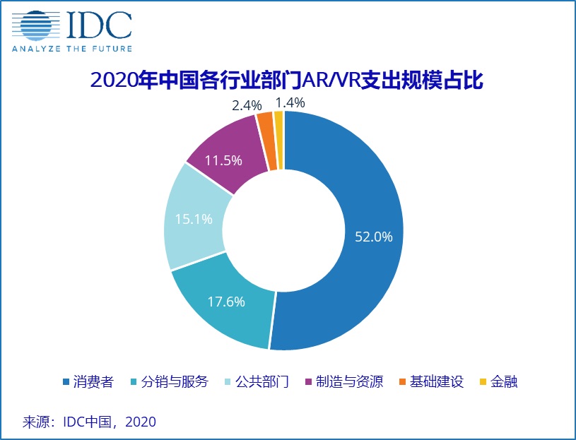依据最新发布的《IDC 全球增强与虚拟现实开销攻略》(IDC Worldwide Augmented and Virtual Reality Spending Guide, 2020V2),
