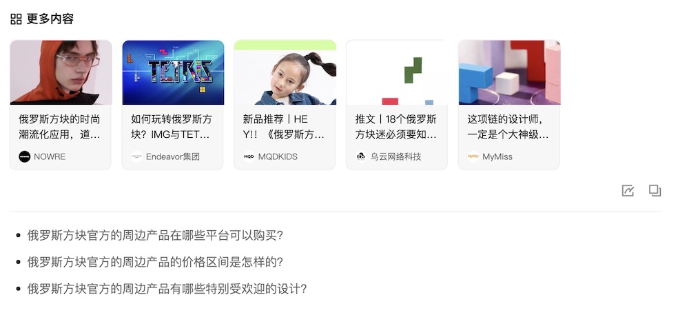 给出答案后,内容下方会随附更多引荐内容与给出的主张问题,便使用户深化探究。