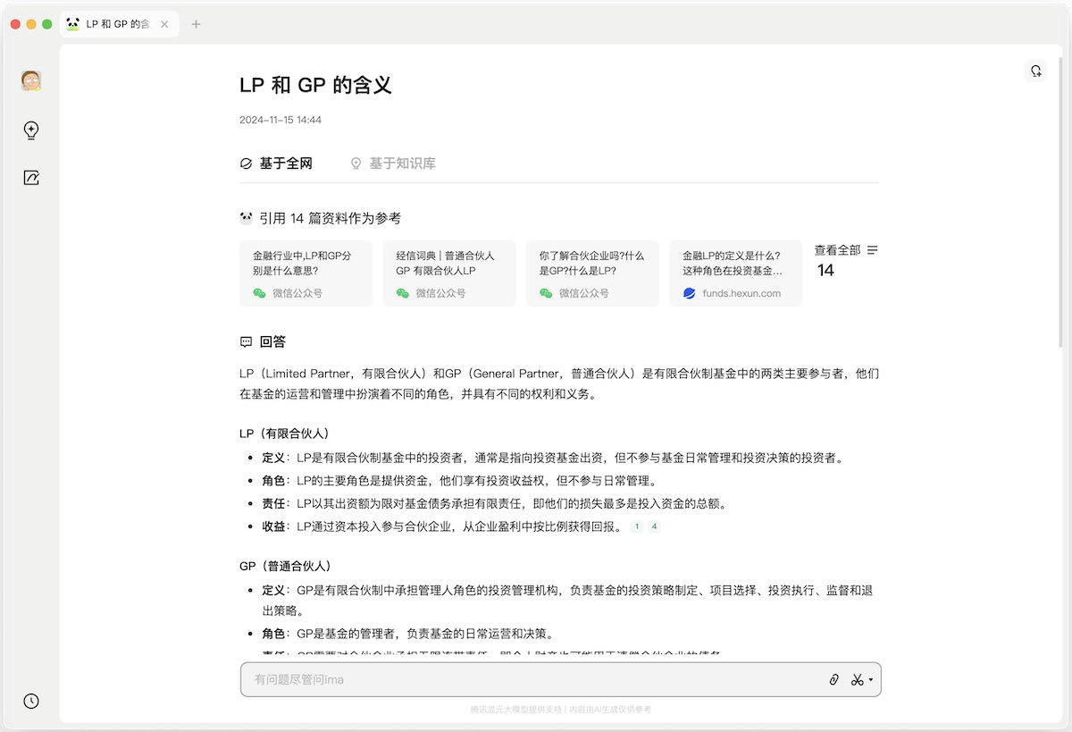 运用 ima 进行 AI 查找的感觉似曾相识,感觉与豆包、kimi 等智能助理的十分挨近。