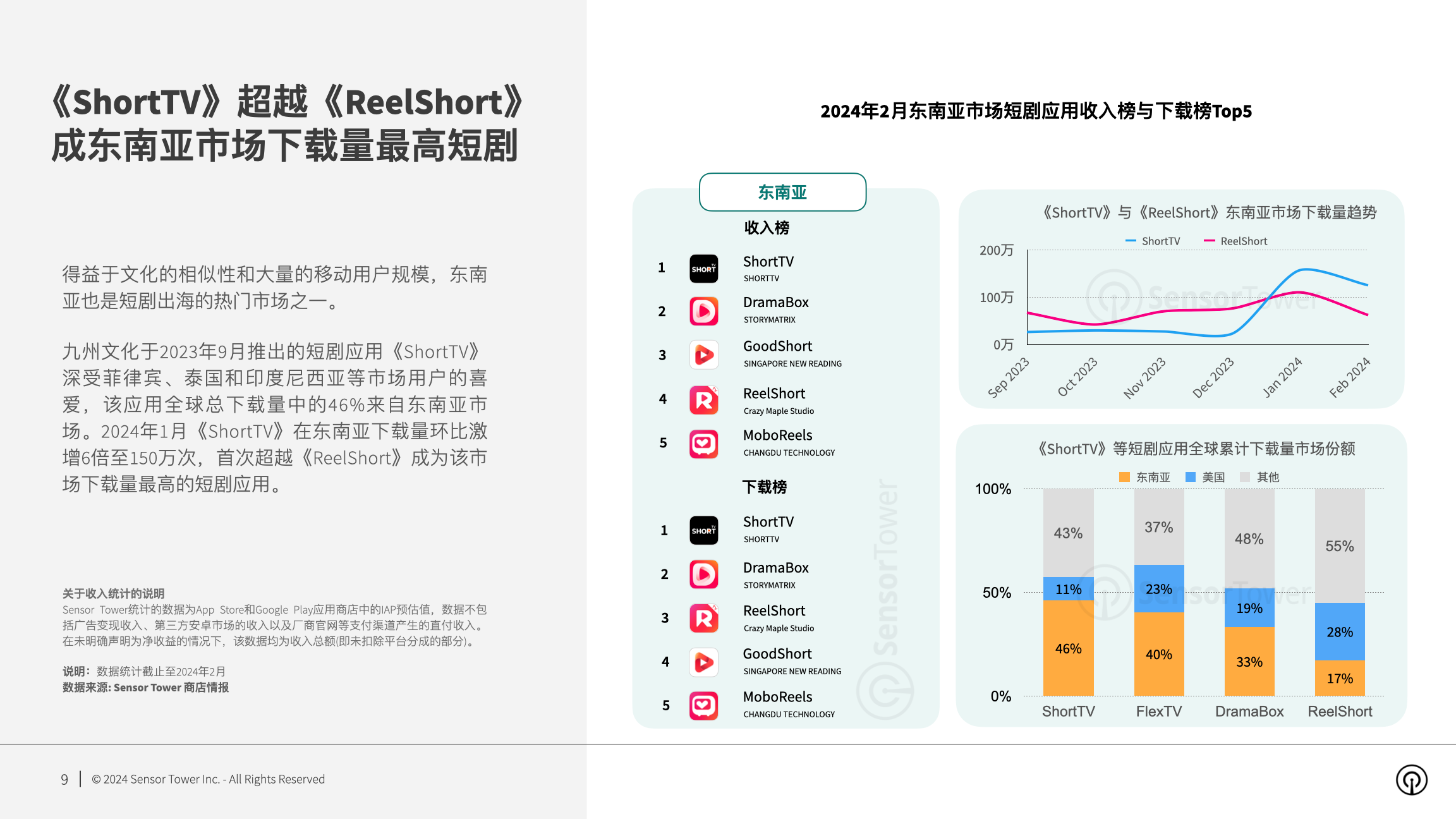 Sensor Tower发布了2024年短剧出海商场洞悉,以下为具体内容: