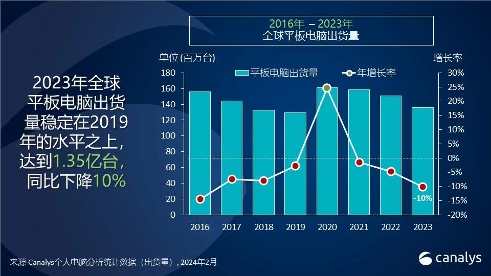Canalys:2023 年全球平板电脑市场艰辛收官,第四季度下滑 11%