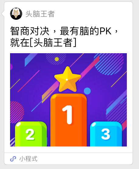 类似于「王者荣耀群排行」,「脑筋王者」小程序设置了相应的排行榜功用,有「老友排行」「国际排行」两个榜单,作用呢就不多说,影响用户的展现希望,最下方还可约请老友。而「老友对战」点击即可共享小程序到群组或许单人谈天界面,约请老友进行实时对战。假如共享到某个群,除了对战的老友之外,其他的老友还能进行围观。