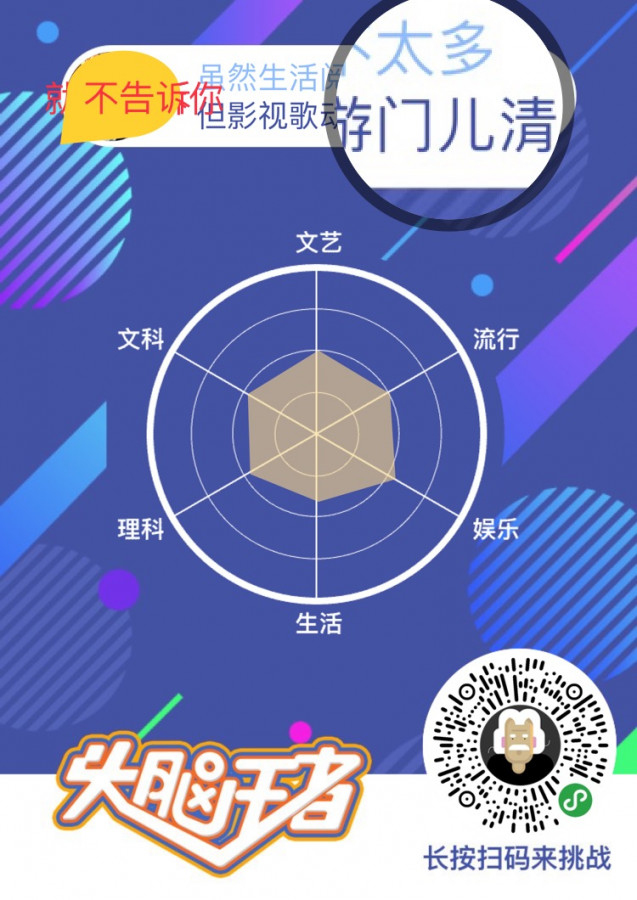 此外,每场对战会设置五回合不同主题的标题,例如文科、理科、文娱、日子等等。每回合有10秒的作答时刻,答对每回合取得相应的积分,接连答对奖金还翻倍,五回合的得分顺次添加,最终一回合双倍得分。值得一提的是,每回合得分的凹凸取决于答题速度,越快分值越高。